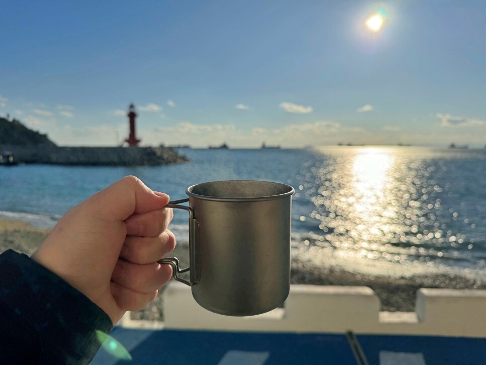 배낭에 보온병과 커피, 간식 등을 챙겨왔어요. 아름다운 풍경을 바라보면서 마시는 차 한 잔은 정말 행복합니다. 날씨가 많이 추웠지만 힐링이 되는 느낌입니다.