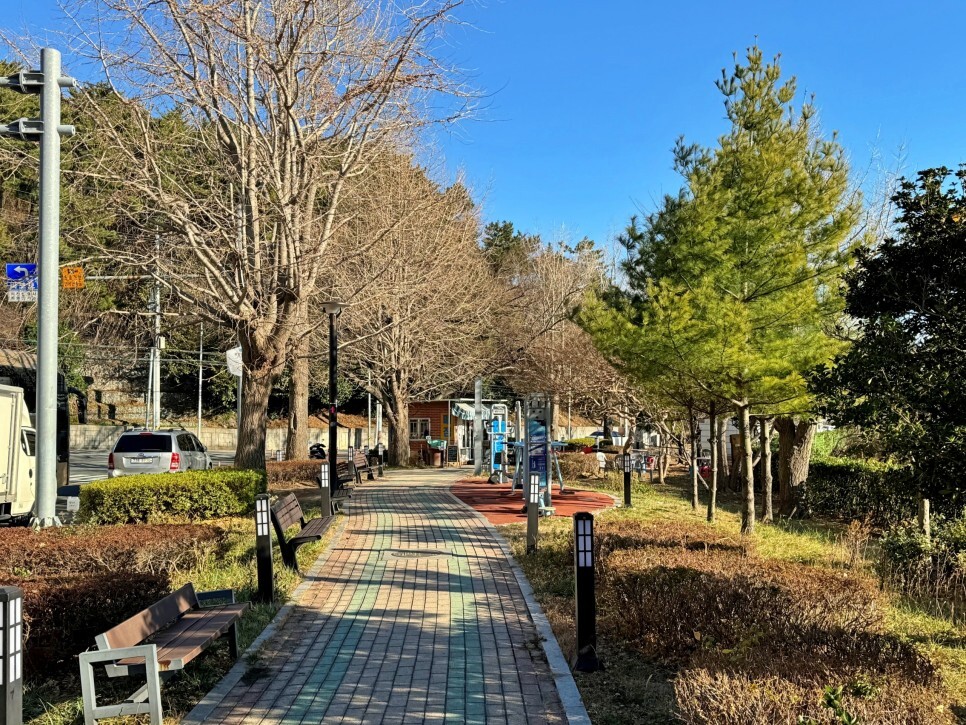 작은 소공원도 만납니다. 벤치가 곳곳에 있고 운동기구와 화장실, 매점 등이 있어서 잠시 쉬어가기 좋은 곳입니다.