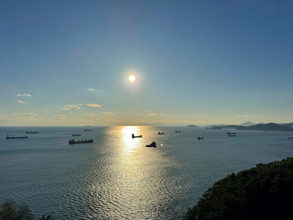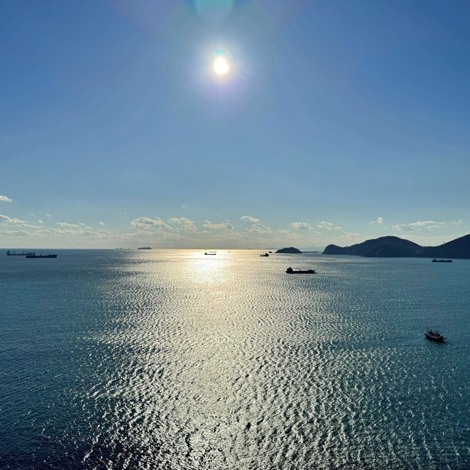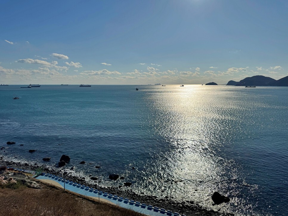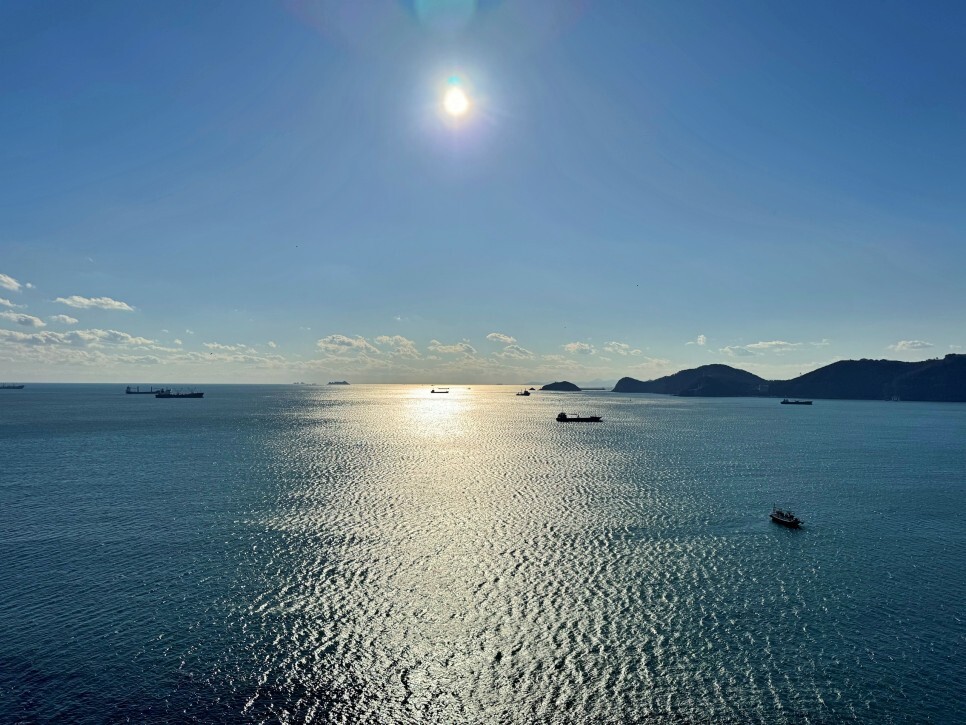 오늘처럼 날씨 좋은 날에는 부산에서 대마도가 보여요. 예전에 이 말을 안 믿는 분들이 있던데 진짜 보입니다. 그만큼 가까워요. 사진에는 조금 아쉽게 담겼지만 실제로 보면 정말 가깝게 보입니다.