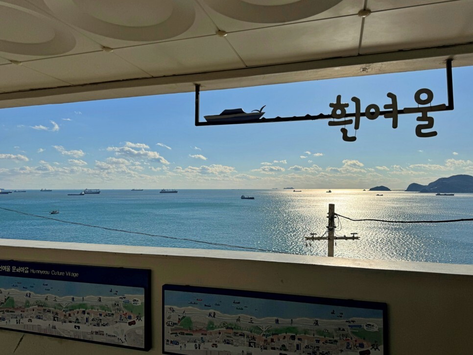 며칠째 비가 오는 흐린 날이 계속되다가 다행히 주말에는 날씨가 개네요. 집에서 버스를 타고 20분 좀 넘게 달려 도착한 이곳은 흰여울문화마을입니다. 흰여울마을 안내센터 전망대에서 잠깐 바라보는 바다는 오늘 일정을 설레게 하기 충분했어요.