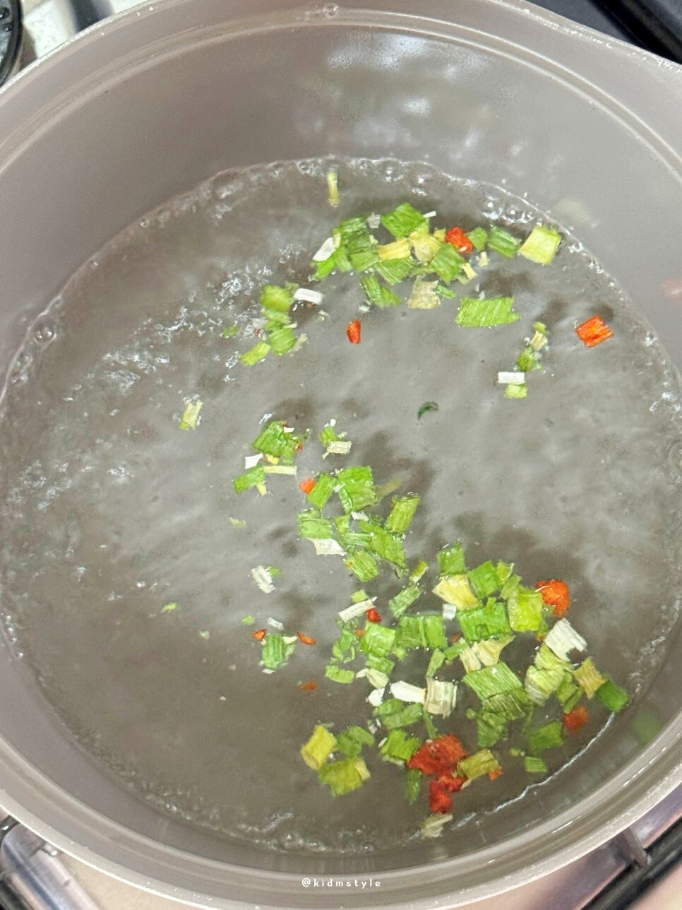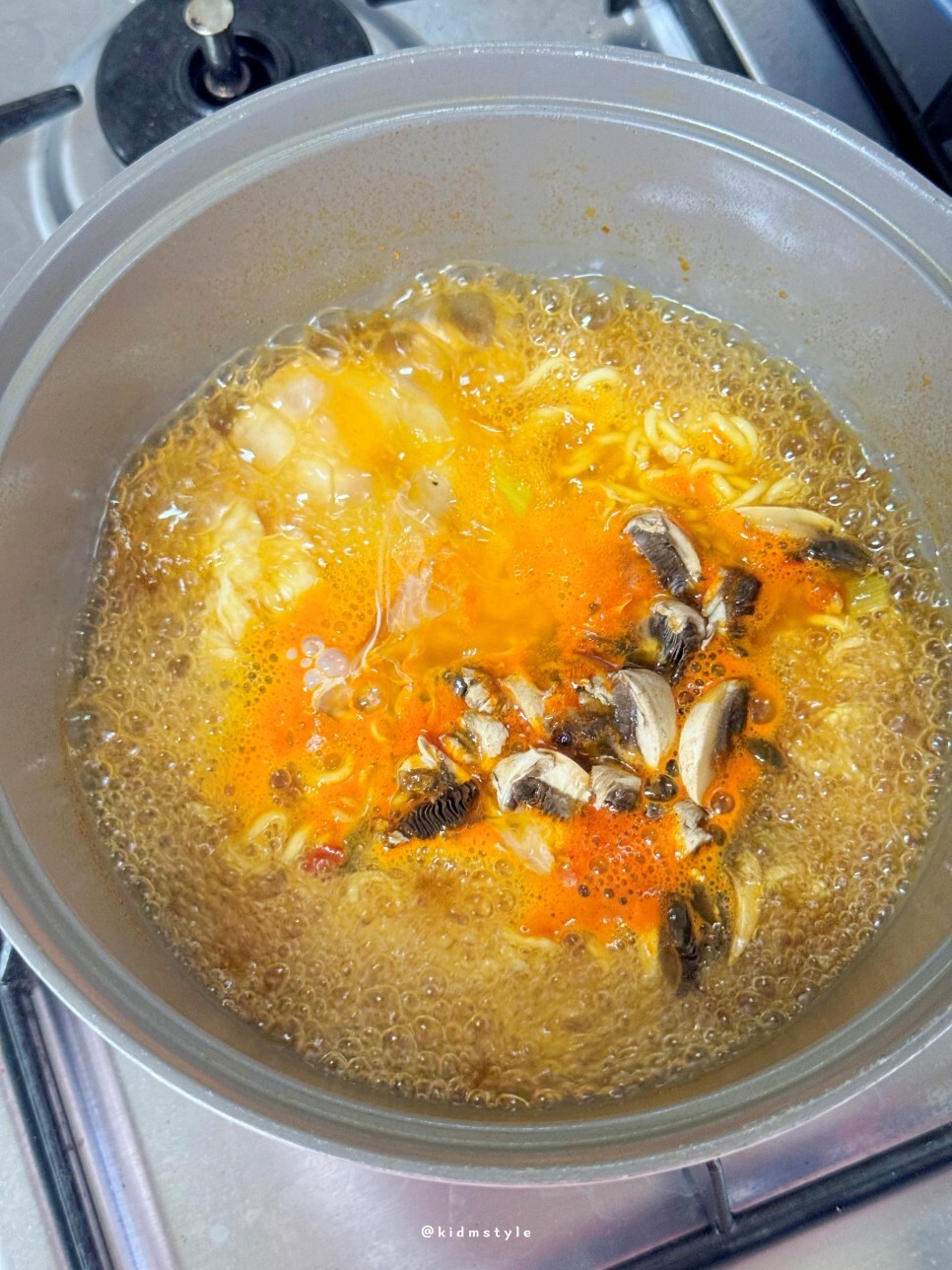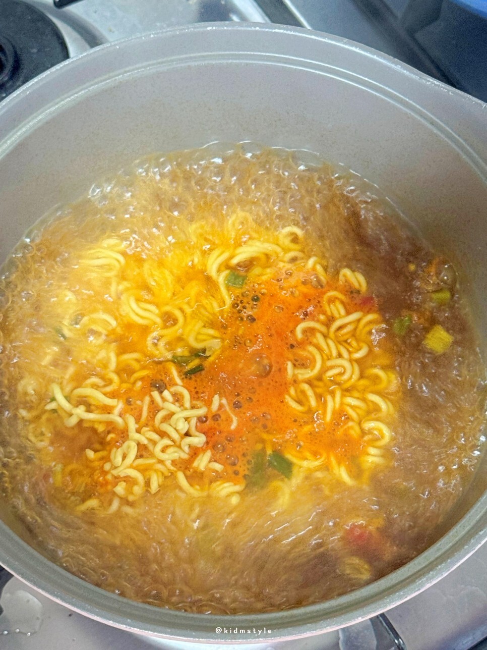 물이 끓고 나서 본격적으로 라면을 끓인다.