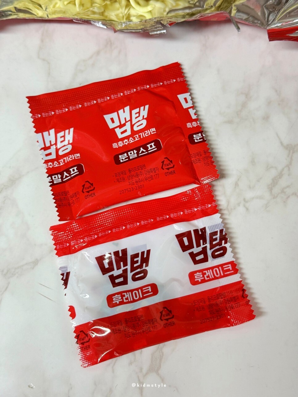 스프를 열고 살짝 찍어 먹어보니 스프에서 소고기라면 맛이 난다.