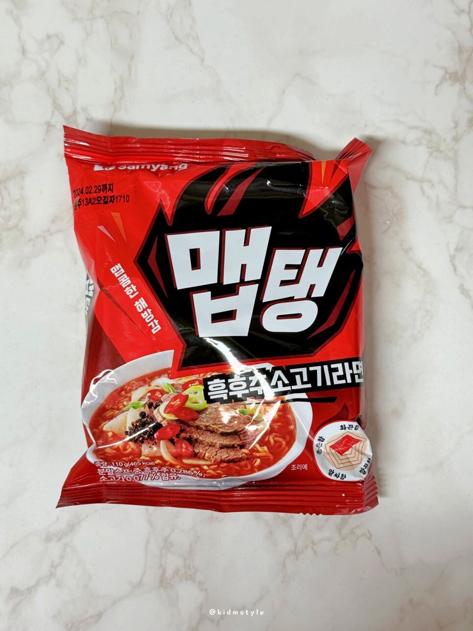 아무튼 나처럼 매운 걸 잘 먹는 사람에게는 반가운 소식이다. 오늘 소개할 신상 라면은 삼양라면에서 나온 맵탱 흑후추소고기라면이다.