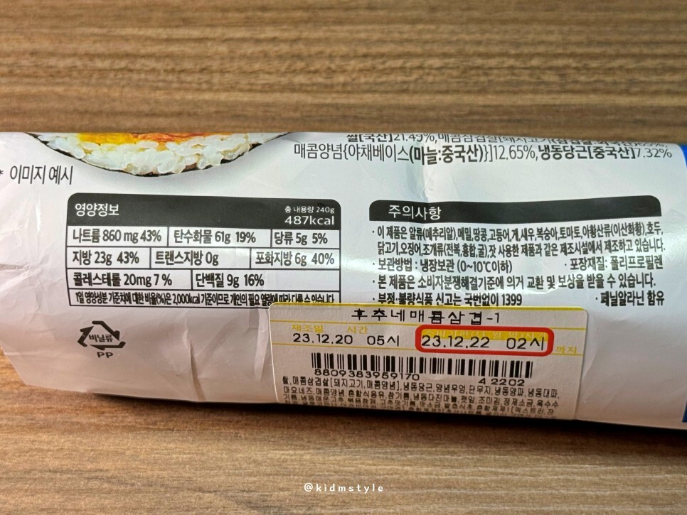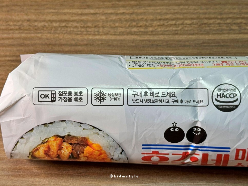 CU 신상 후추네 매콤 삼겹 김밥 영양성분 정보 참고