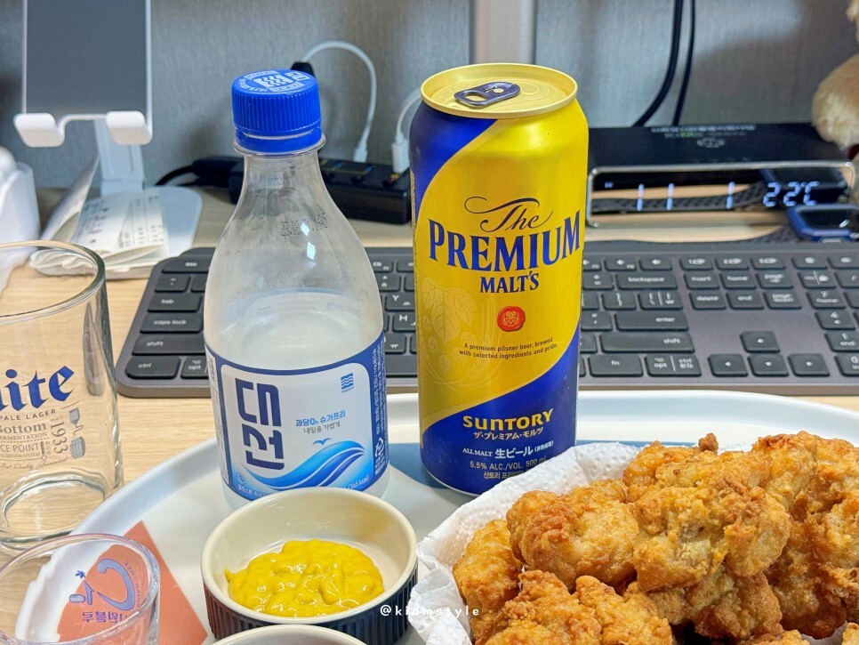 마트에서 엄청 저렴하게 팔길래 사 온 산토리 맥주와 부산 사람 부산 소주 대선으로 소맥 한잔