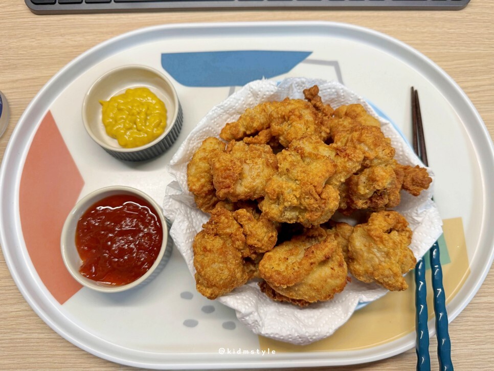 바닥에 종이호일을 깔고 돌렸다. 13분 정도 돌리니 바삭하니 잘 조리가 되었다. 참고로 500g을 전부다 돌린 게 아니고 일부는 다시 냉동실로.