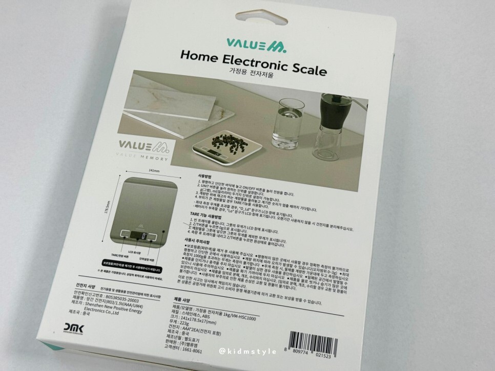 리뷰할 제품은 벨류엠 가정용 전자저울이다. 가격은 만원 정도 하더라.