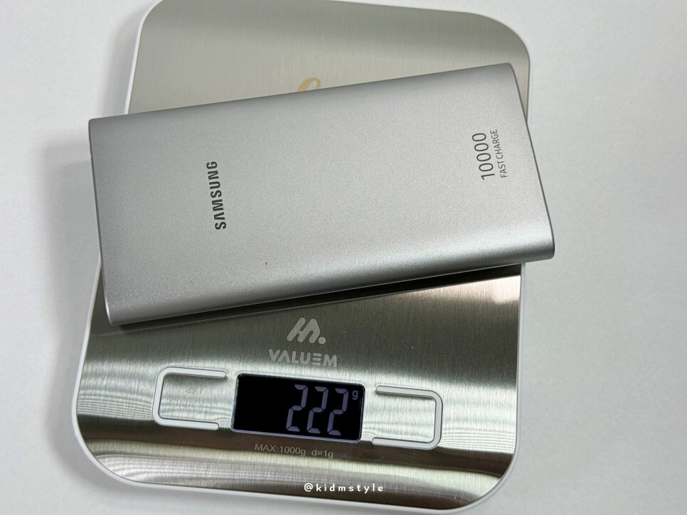 저울의 무게는 223g, 전원은 AAA 건전지 2개를 사용한다.