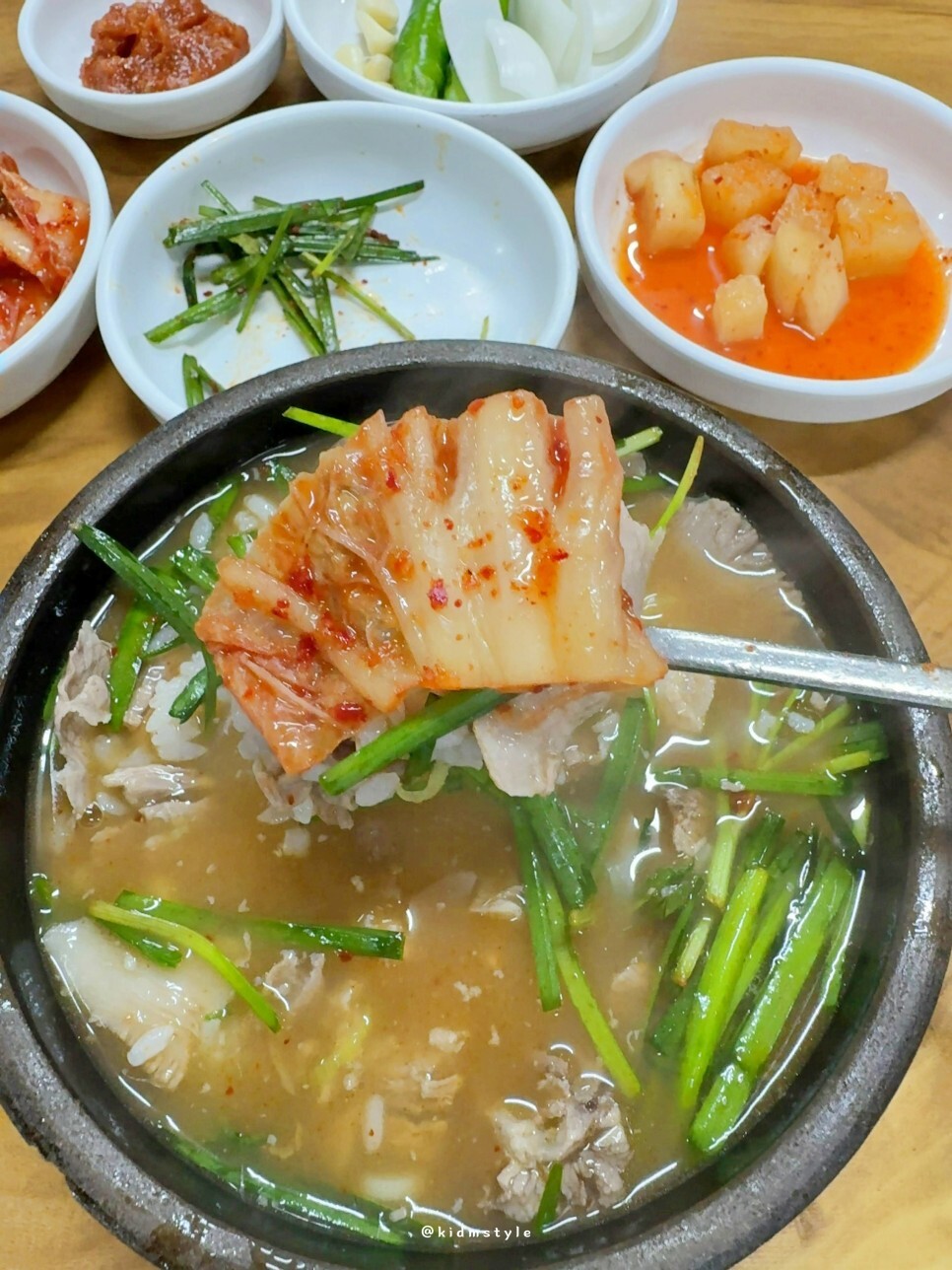 반찬과 국밥이 같이 나온다. 공깃밥이 따로 나오는 따로 국밥이다.
