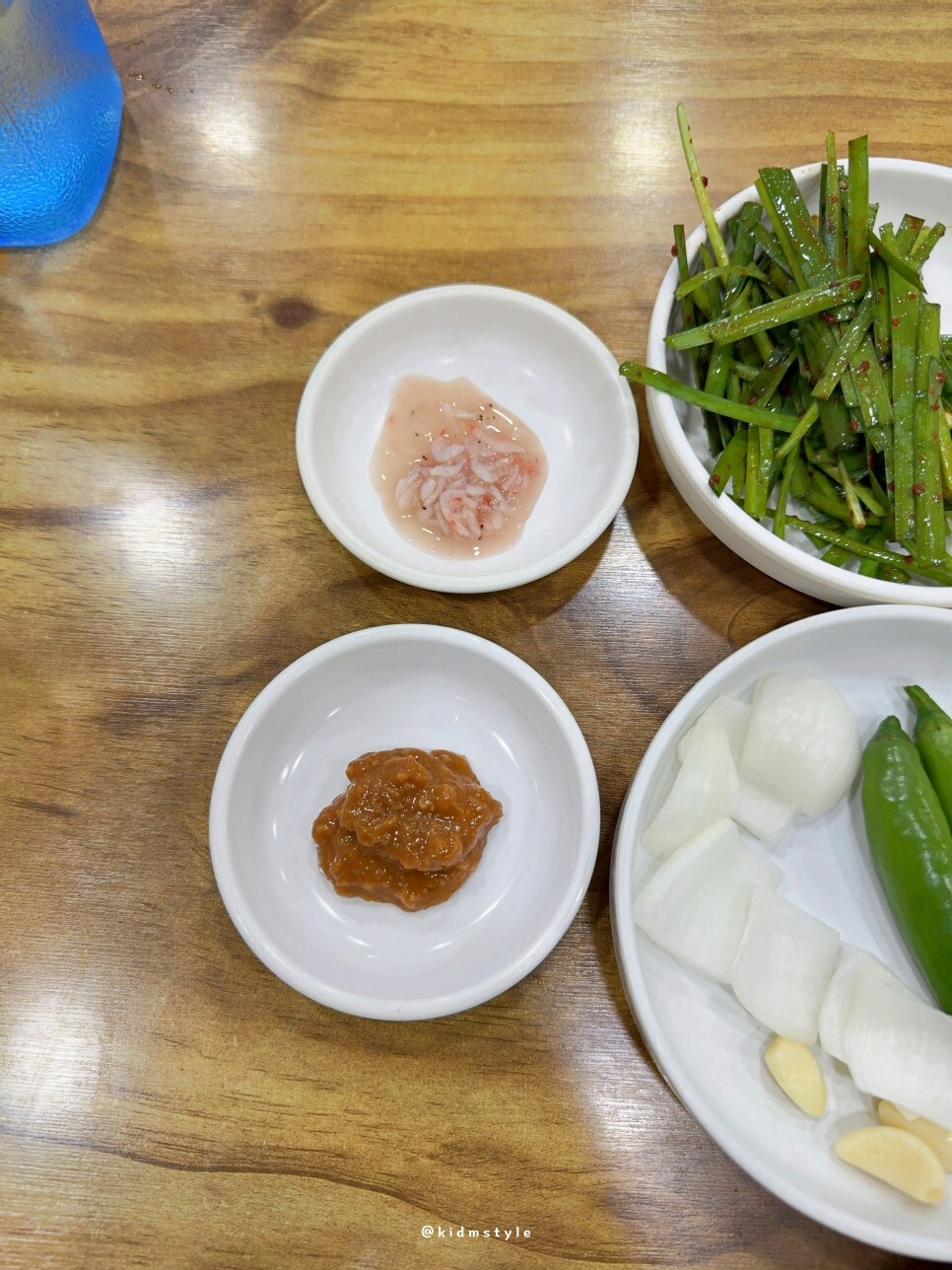 그리고 국밥에 빠져서는 안 될 새우젓과 고추, 마늘, 양파를 찍어 먹을 쌈장까지 국밥을 즐길 준비는 다 됐다.