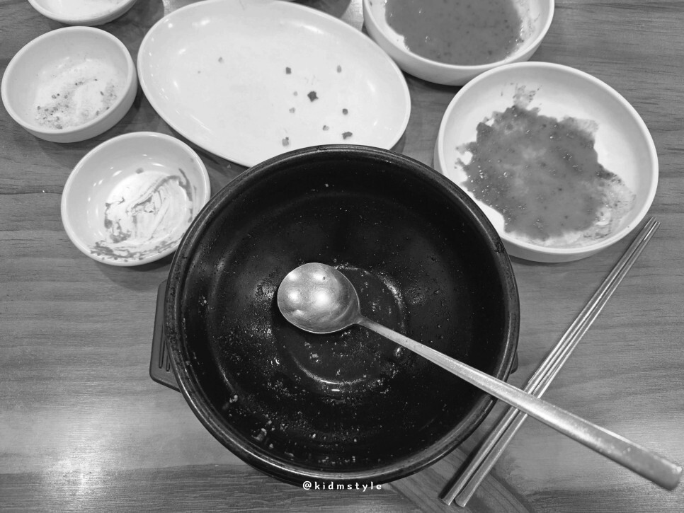 깔끔하게 돼지국밥 한 그릇, 순대 한 접시를 싹 비웠다. 오래간만에 맛본 부산역 밀양돼지국밥은 여전히 매력 있고 맛있었다.