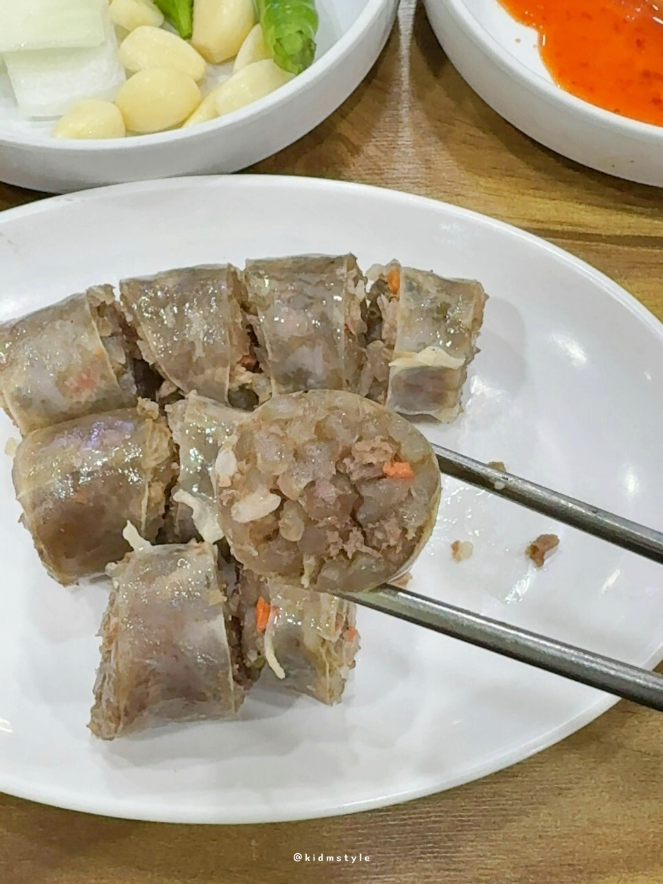 사장님과 잠깐 대화를 하게 되었다. 예전에 종종 다녔고 최근에 감래킹님의 글 소개로 방문했다고 말씀드리니 너무 반갑다고 맛보기로 순대를 내어주신다.