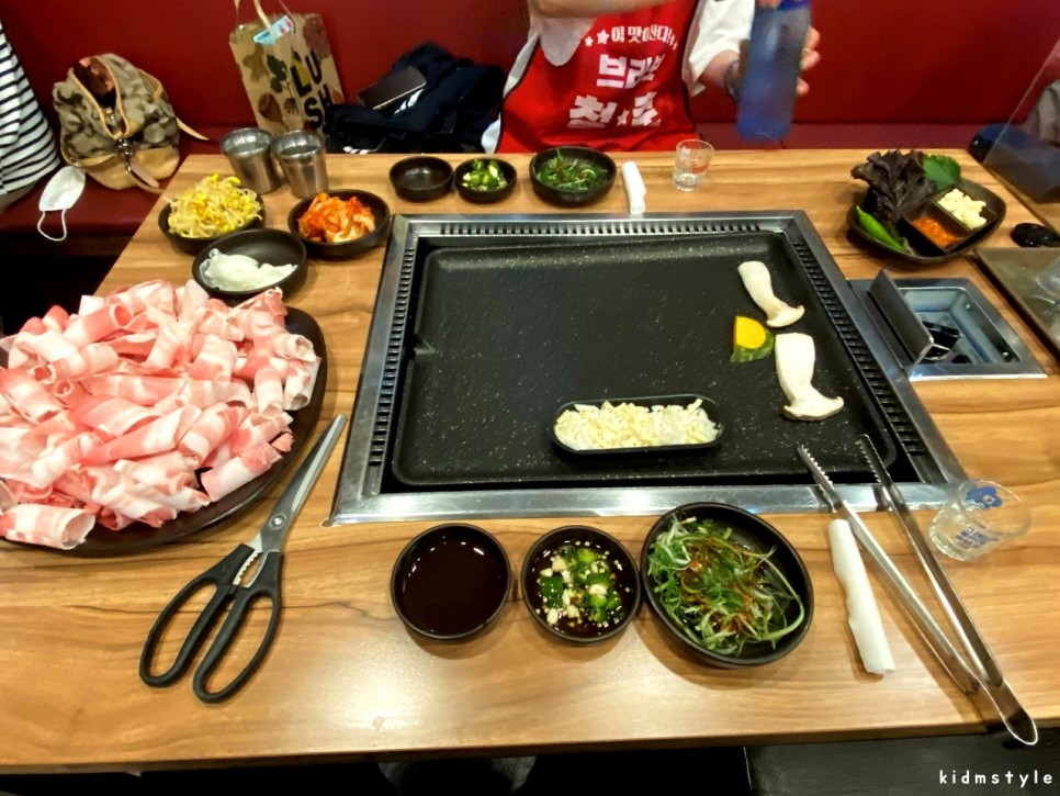 우리는 콩나물, 김치를 구워 먹는 것을 아주 좋아하기 때문에 셀프가 참 좋다.