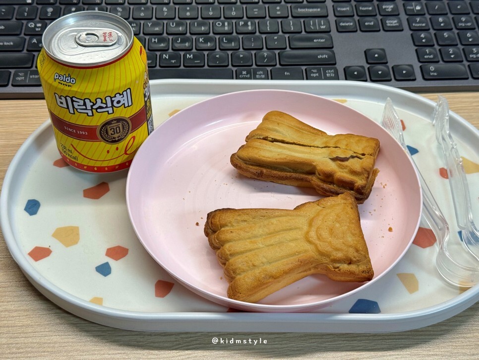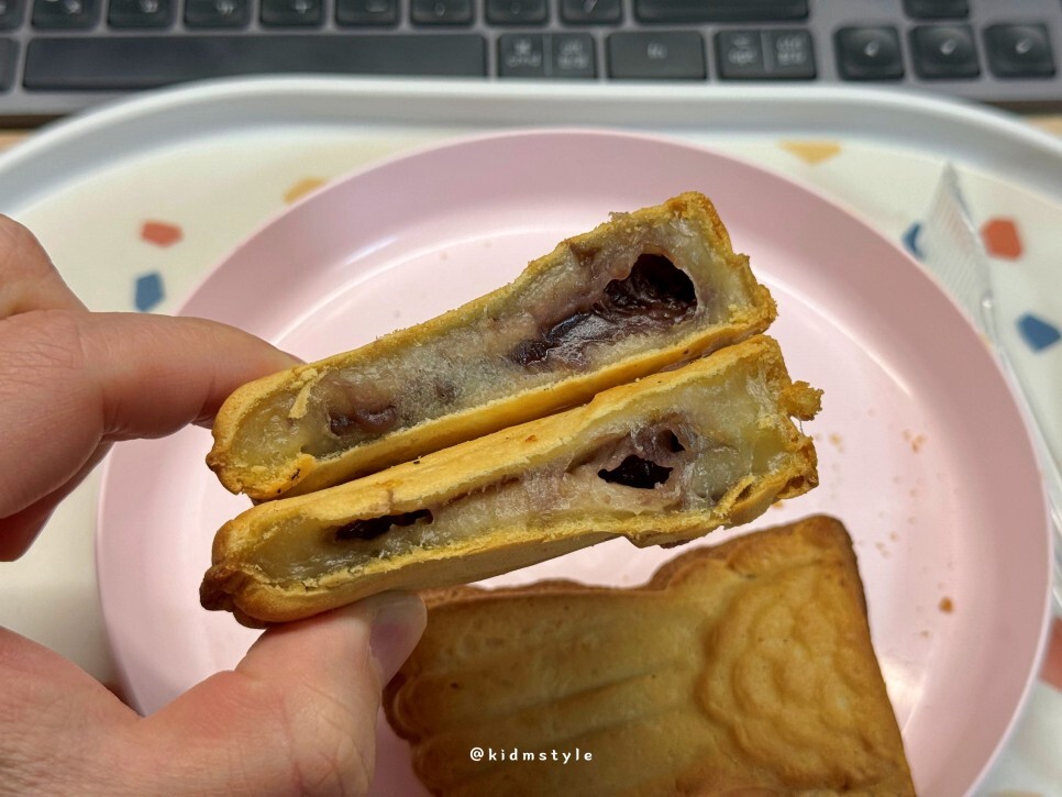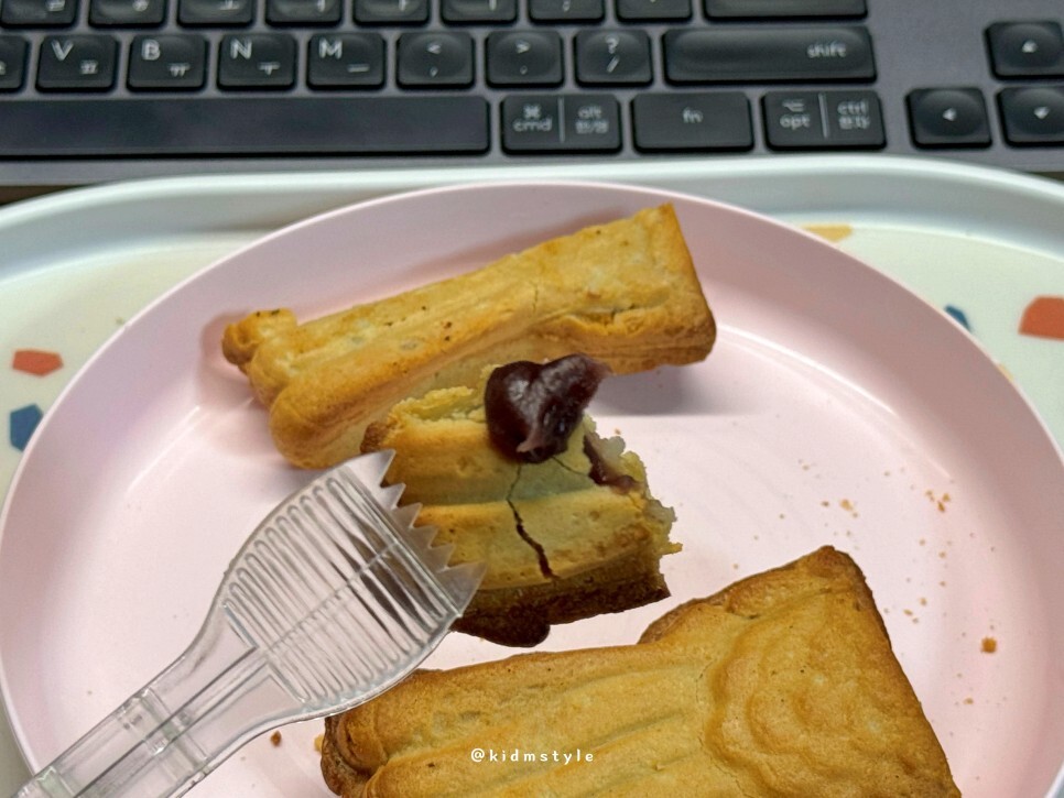 자르다가 초점이 안 맞아서 다시 찍은 영상이다. 겉은 바삭하고 속은 촉촉하면서 쫀득하고 찰기 있는 아무튼 맛있는 붕어빵 아니 붕어꼬리빵이다.