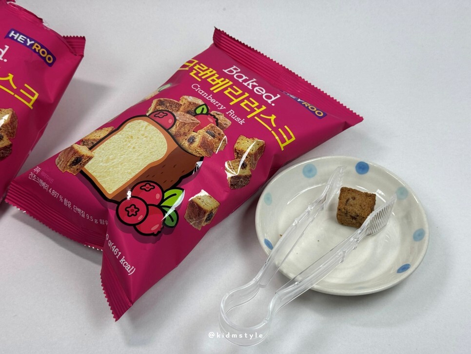 맛을 보니 전반적으로 러스크 특유의 고소함이 있는데 크랜베리의 향과 맛이 느껴진다.