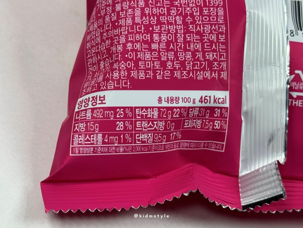 과자는 100g에 461kcal이다.