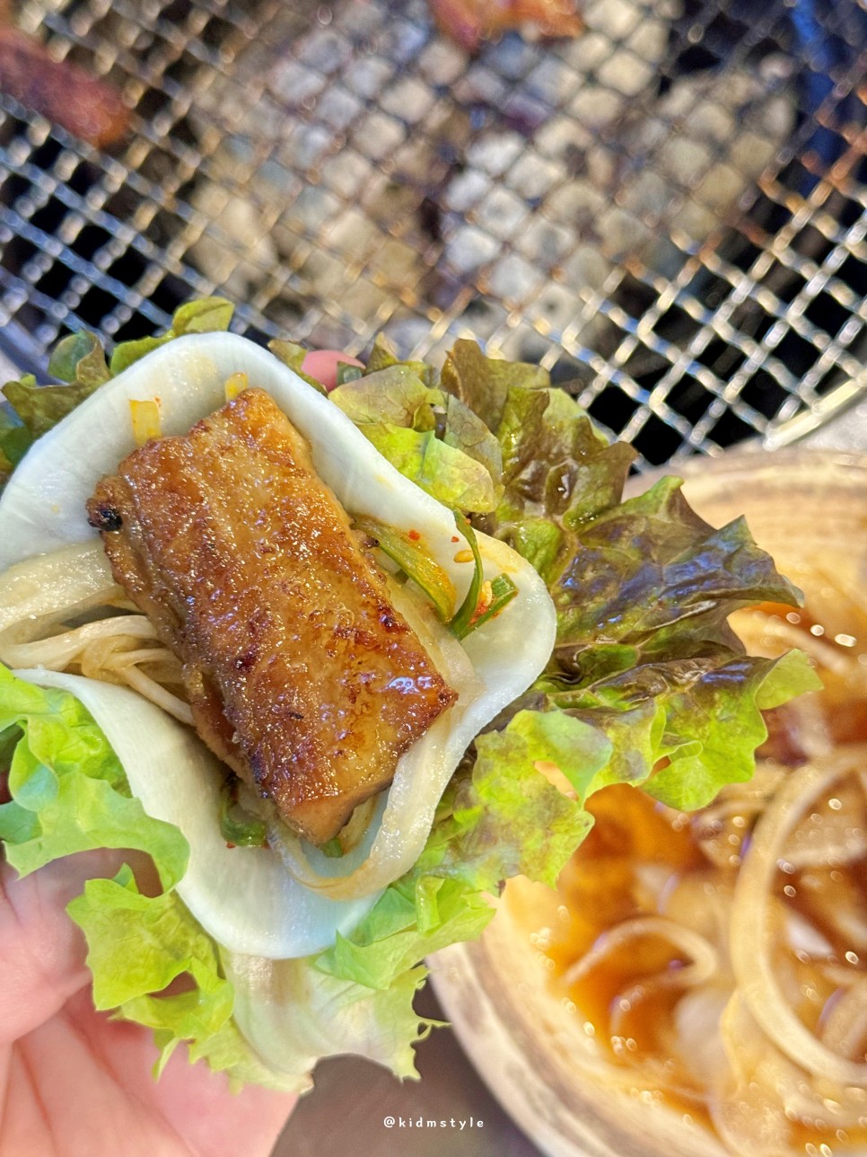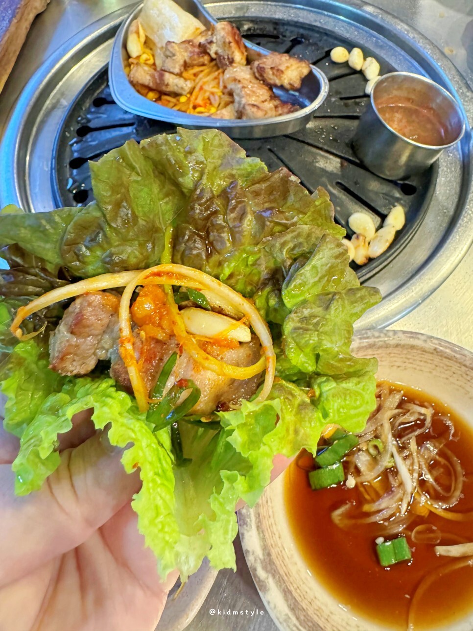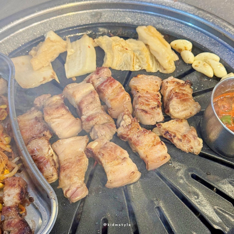 멜젓도 불판 위에 올려서 고기를 찍어 먹으니 진짜 꿀맛이다. 고기 맛 표현을 뭐 따로 할 필요가 없다.