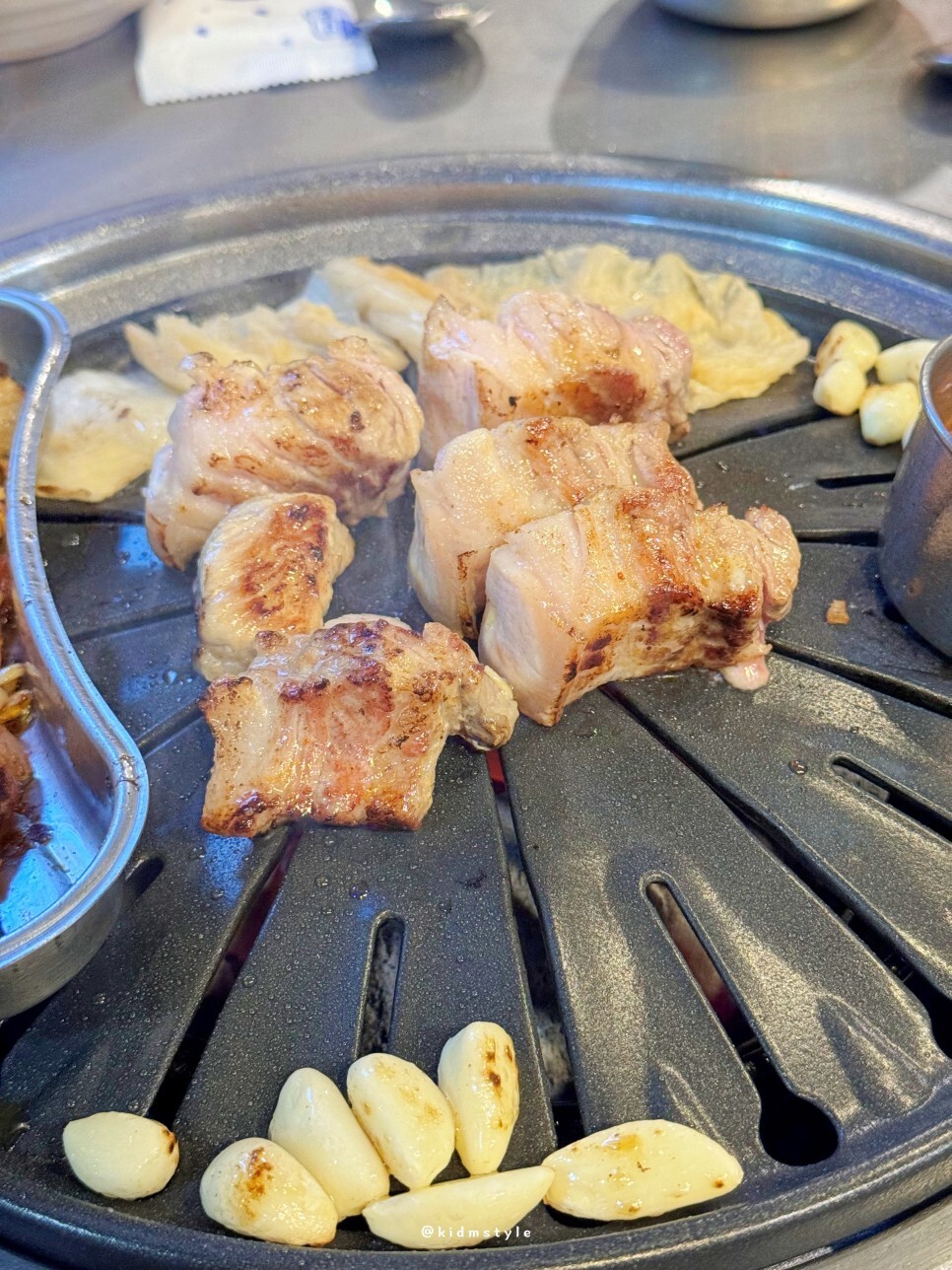 마늘과 백김치도 구워준다. 이 집 불판 상태가 상당히 마음에 든다. 코팅이 좋은 제대로 된 불판이다.