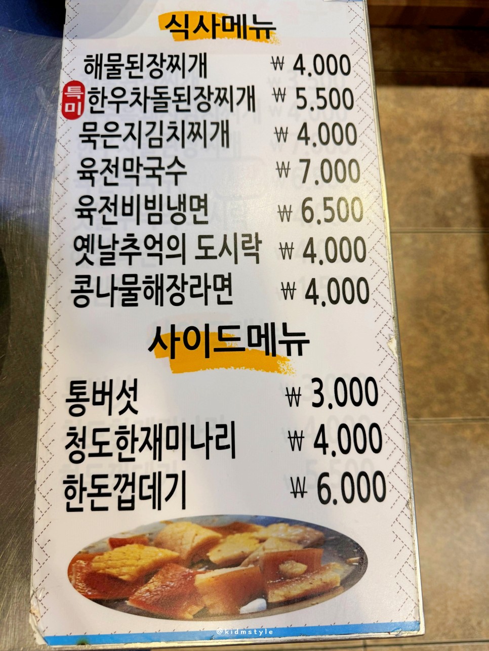 사이드 메뉴판이고 메인 메뉴판을 찍지 못했다.