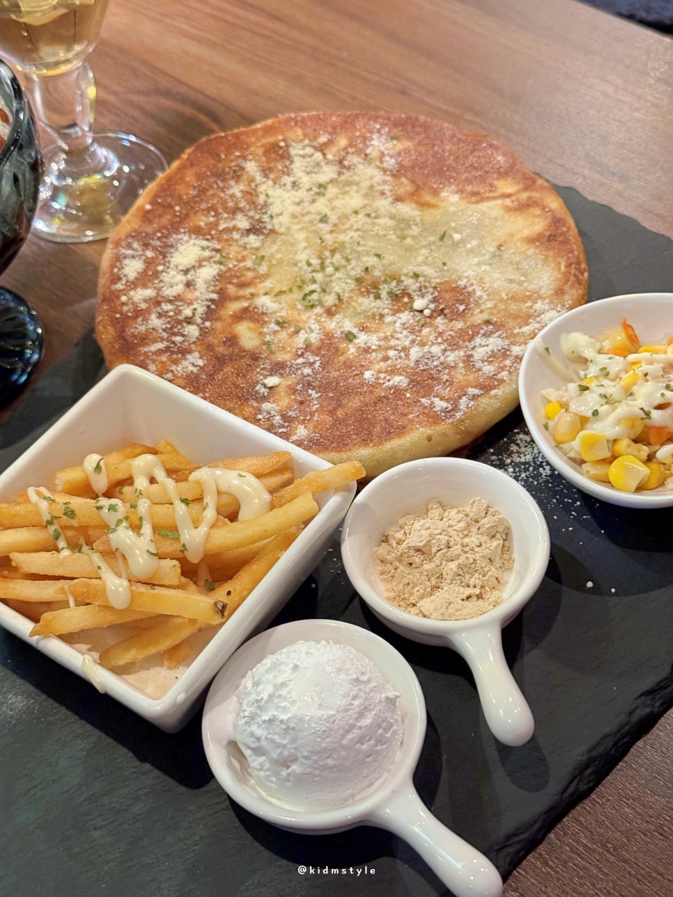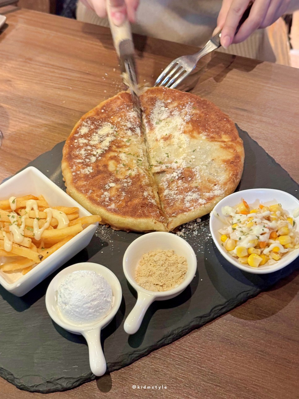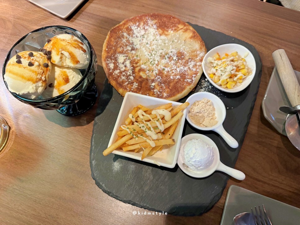 맛있는 호떡과 아이스크림, 감자튀김, 콘샐러드 등