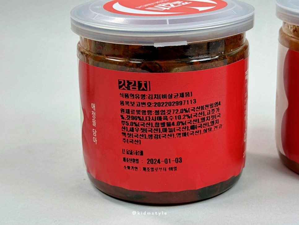 먹어보니 많이 시큼하지 않고 딱 적당한 느낌이 기분 좋게 다가온다. 의외로 매콤함이 있어서 밥반찬으로도 좋지만 라면을 바로 하나 끓이고 싶을 정도로 라면과 잘 어울릴 것 같다.