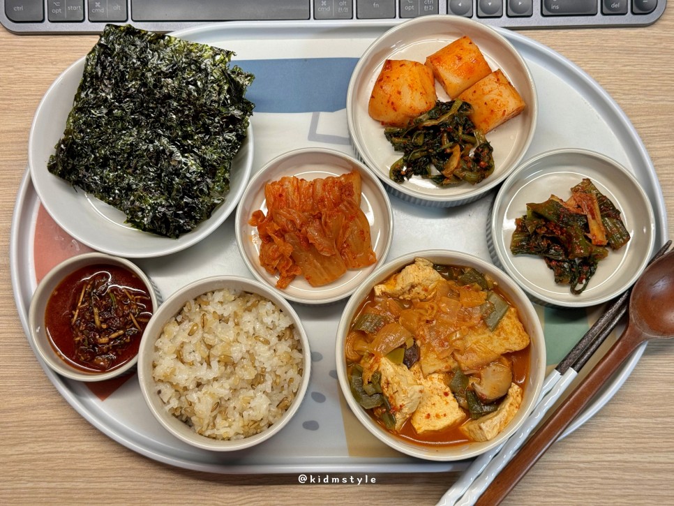 늘 집밥을 좋아하는 나니까 저녁 밥상을 차려보았다. 마침 반찬거리가 없었는데 김치 3종을 차렸다. 김치와 함께 두부오뎅찌개, 곱창김, 달래장 정도로 간편하게 차렸다. 밥은 귀리 현미 잡곡밥이다.