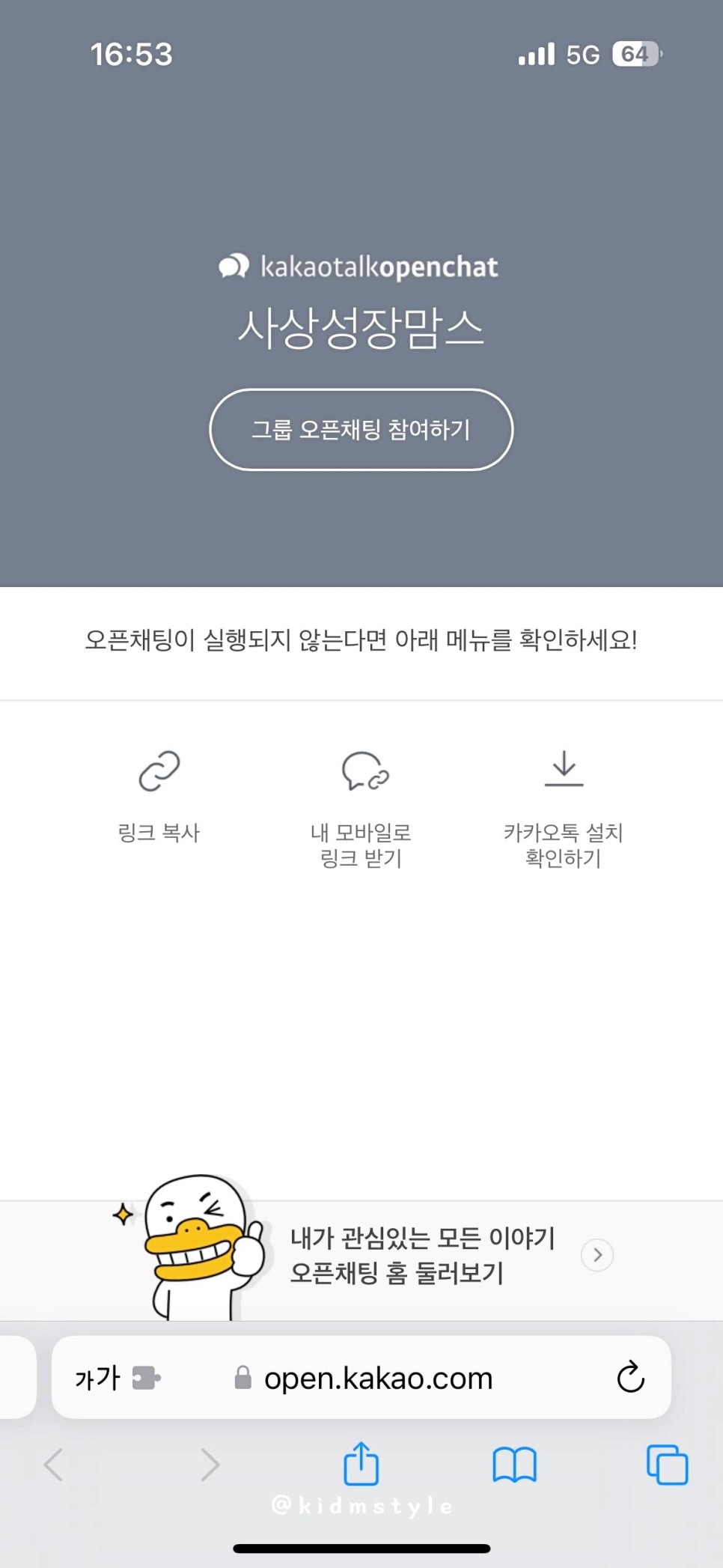 QR코드를 찍으면 오픈채팅으로 연결된다.