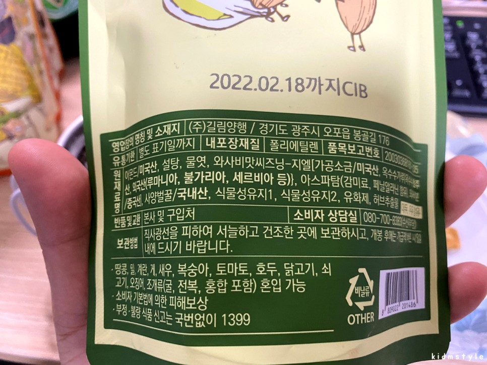 말 그대로 와사비맛 아몬드만 들어가 있다.