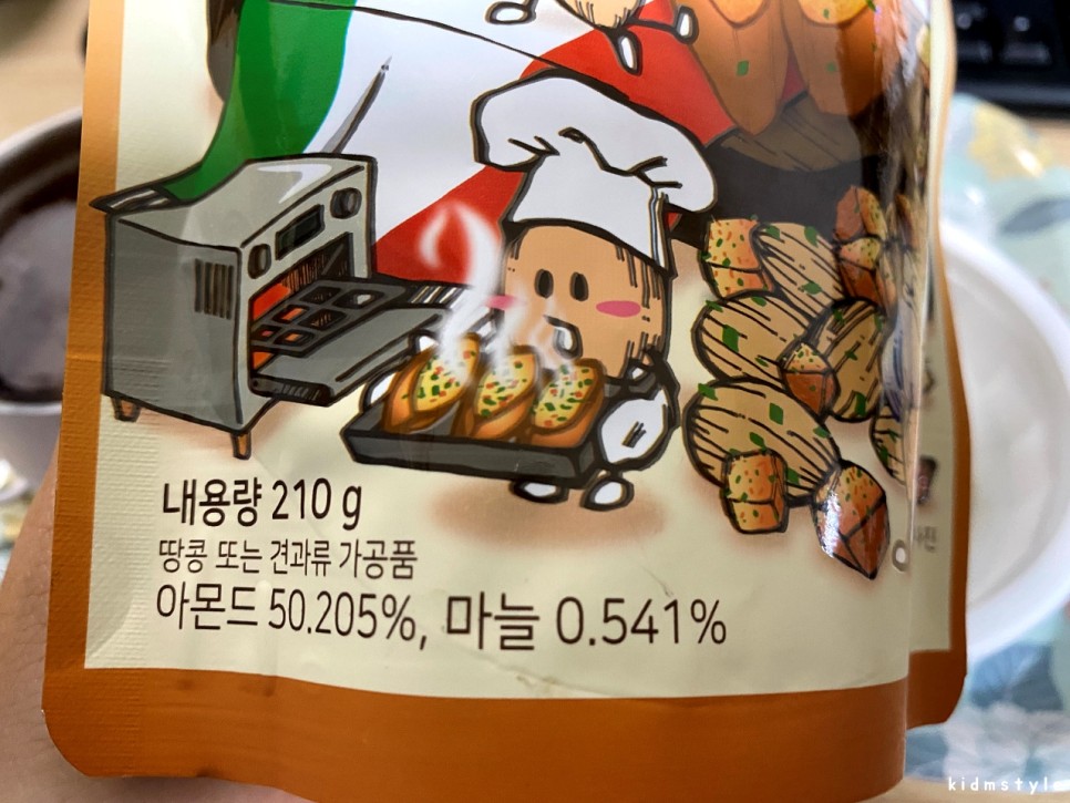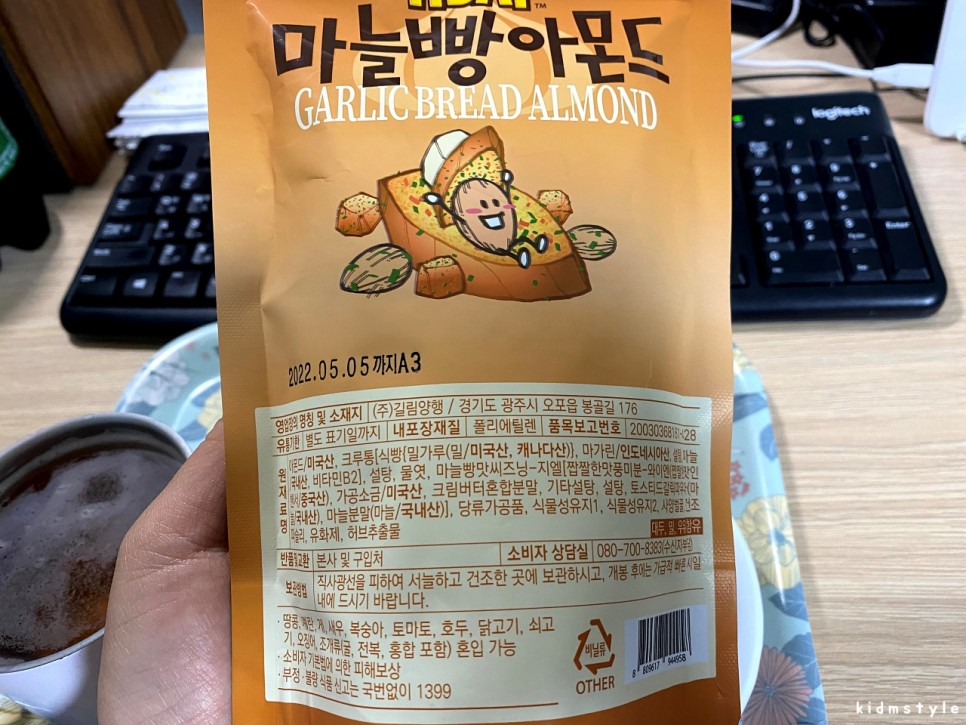 아몬드는 마늘빵 향이 많이 입혀진 아몬드이다. 맛있다.