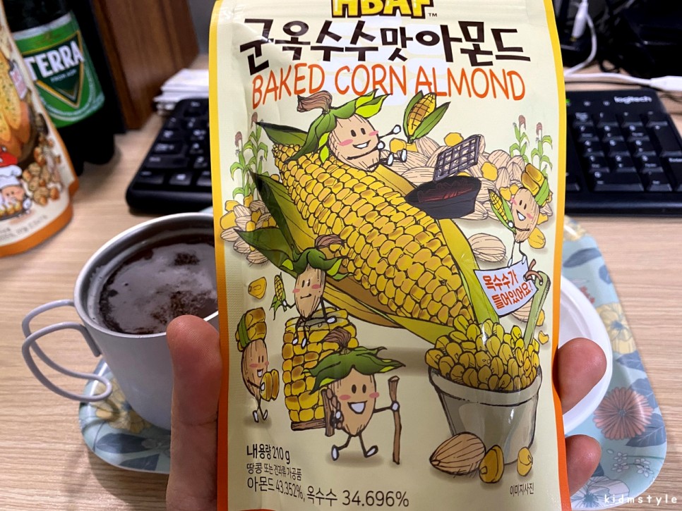 이어서 군옥수수맛 아몬드를 맛보았다.