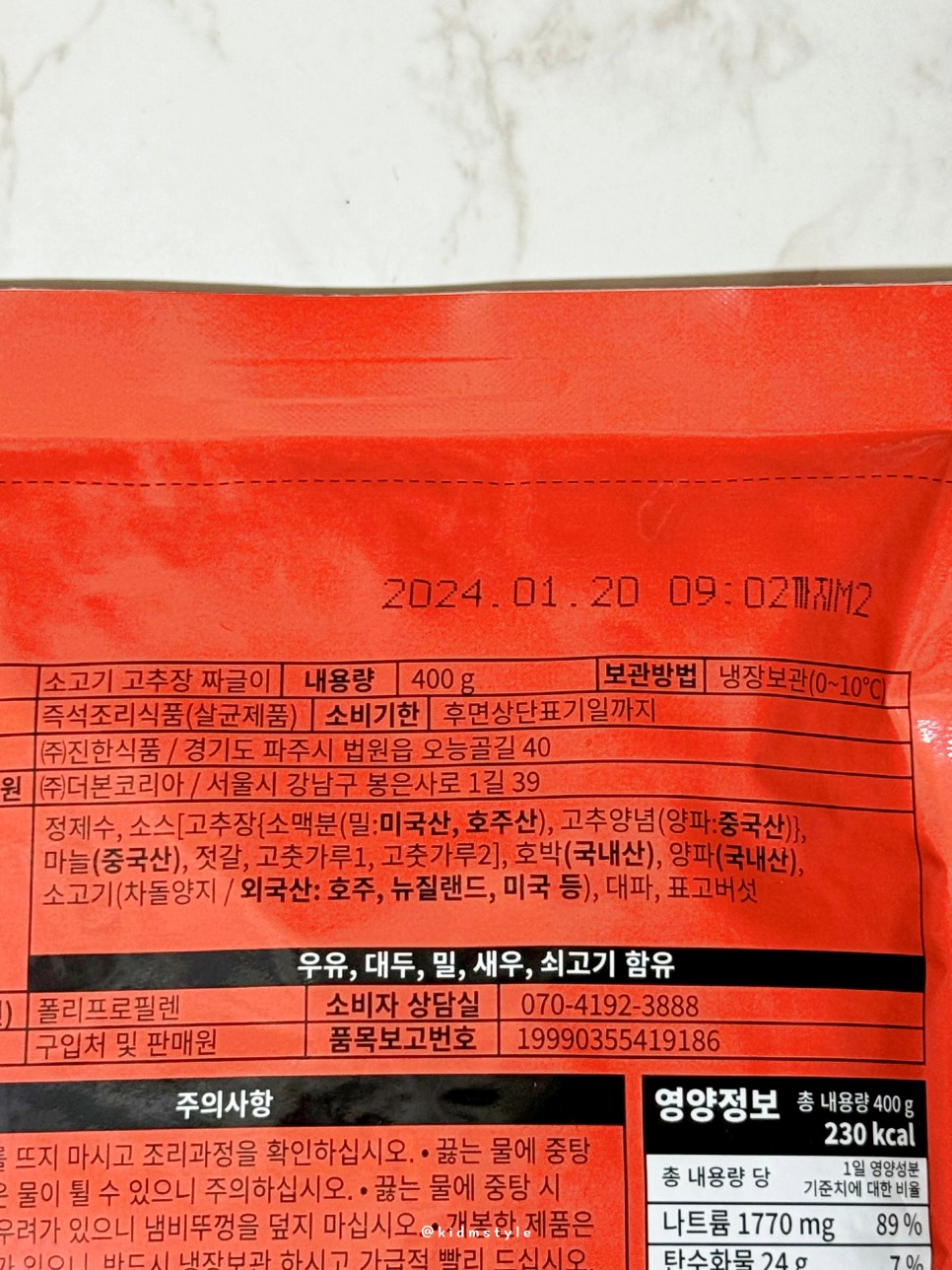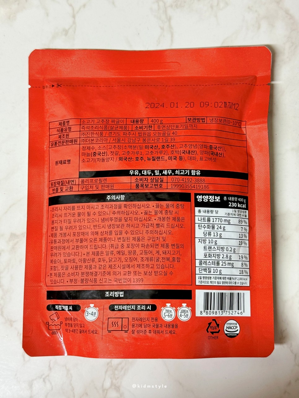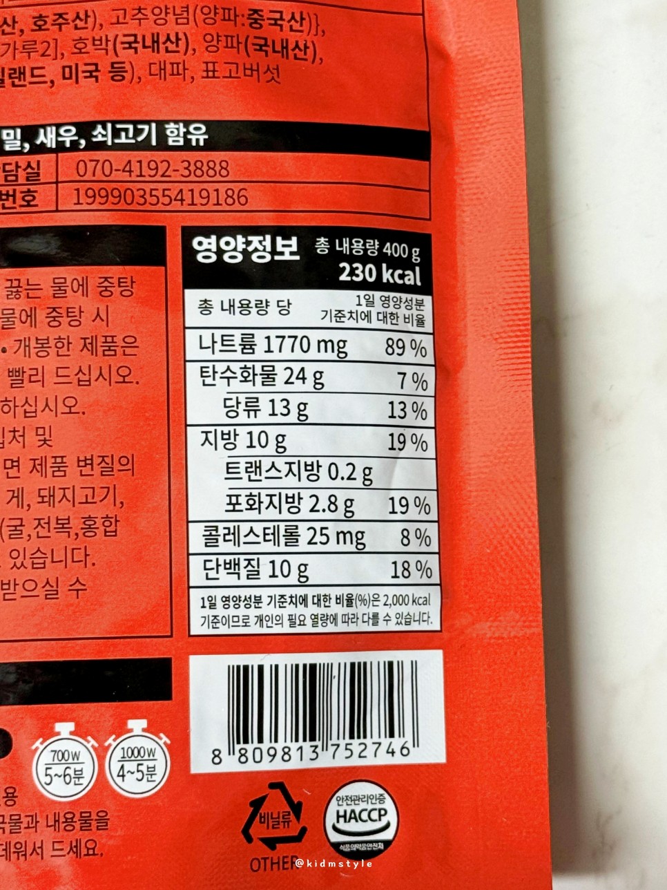 400g에 230kcal로 생각보다 칼로리는 높지 않고 냉장 보관이 원칙이다.
