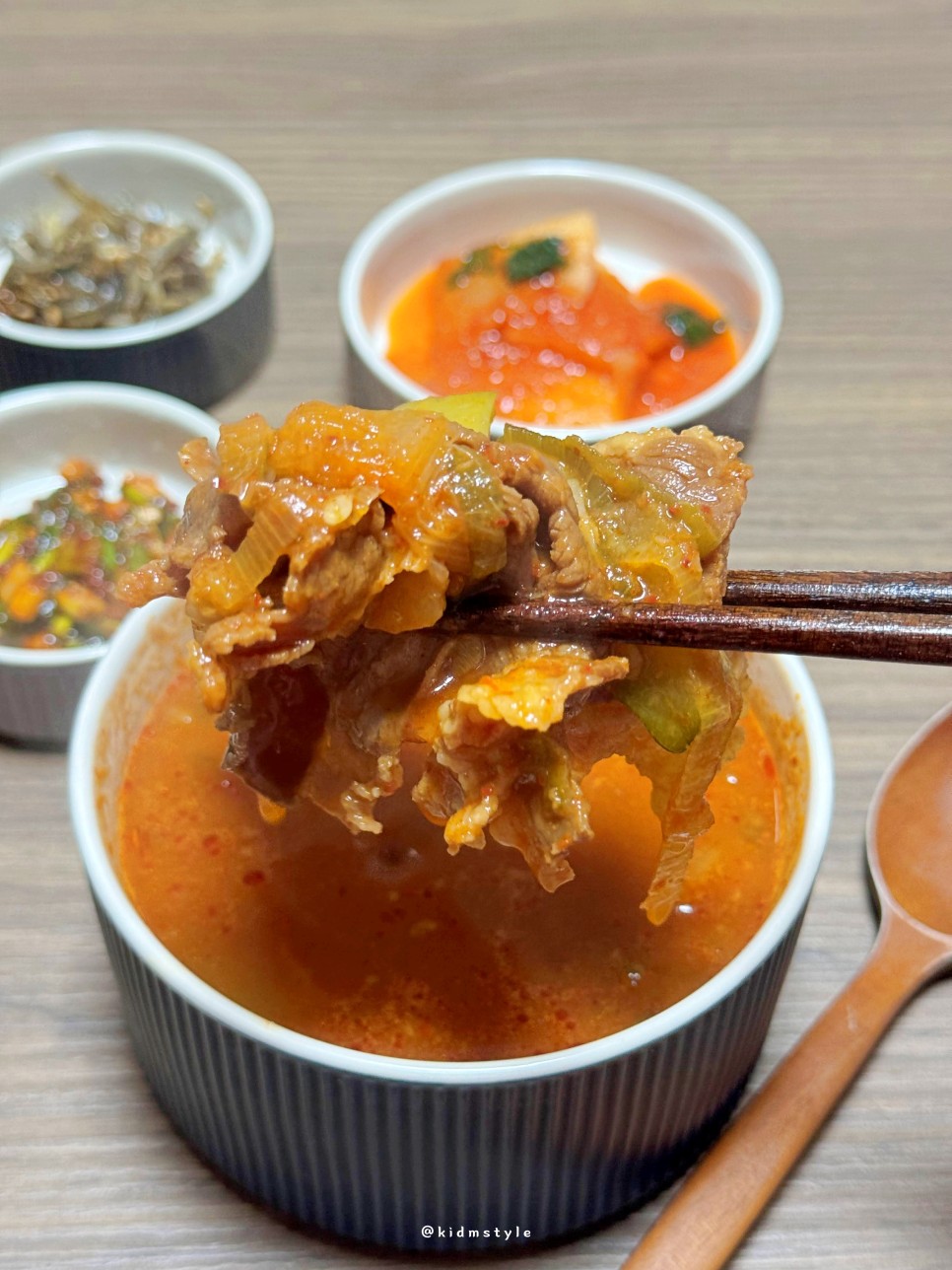 소고기는 잡내 없고 질기지 않아서 마음에 든다. 얼큰하고 칼칼한 국물을 맛보니 소주가 너무 생각난다. 소주 안주로 딱 좋다.