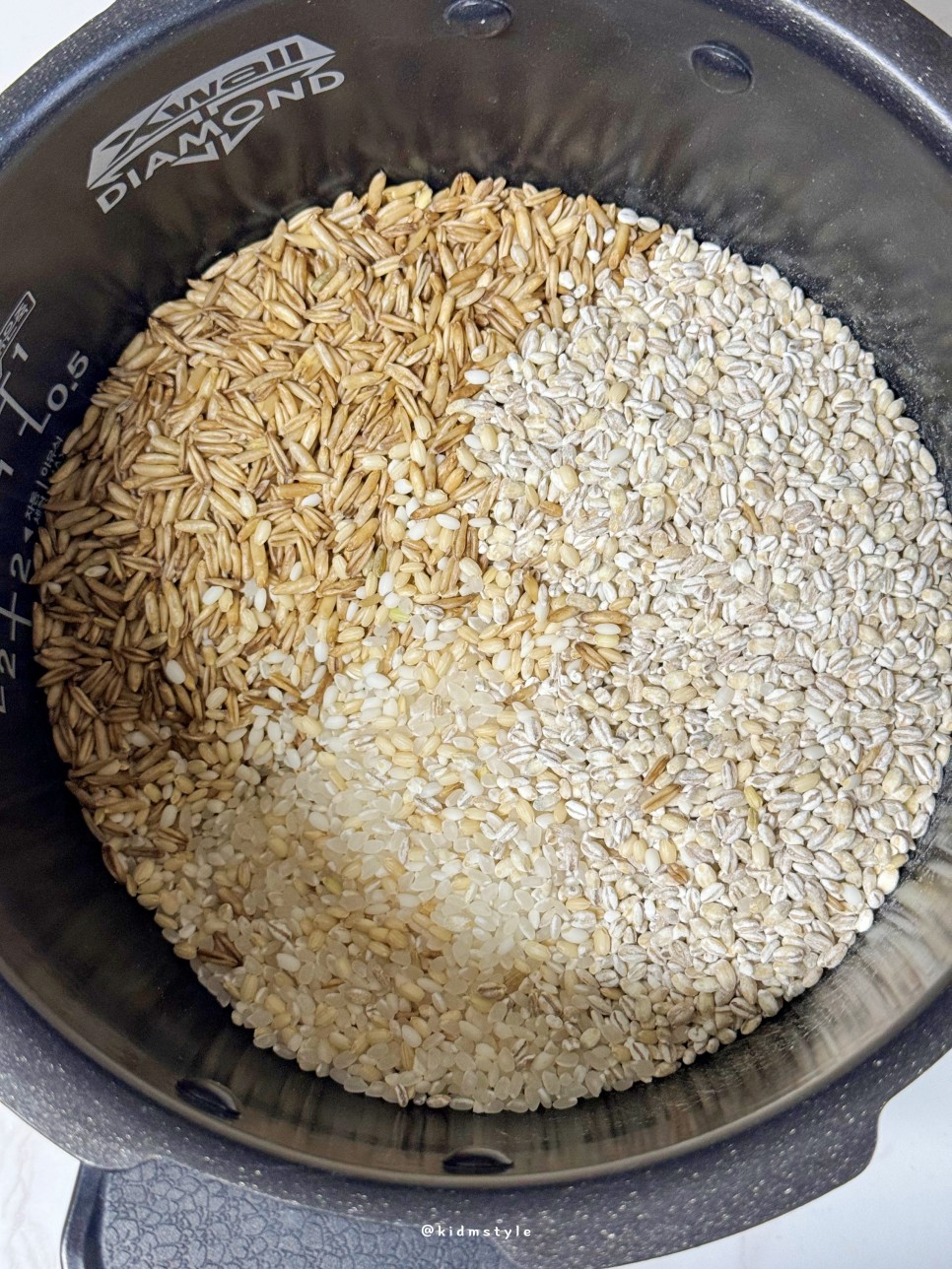 어느 휴일, 점심을 먹으려고 냉동실을 열어보니 소분해 둔 밥이 없다. 얼른 밥을 안쳐본다. 백미보다는 무조건 잡곡이다. 오늘은 흰쌀, 보리쌀, 현미, 귀리 정도 넣고 밥을 해본다.