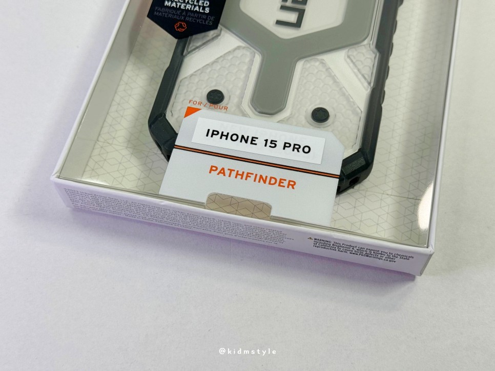 하단에 아이폰 15프로라고 스티커가 붙어있는데 스티커 아래에는 뉴 아이폰 6.1인치라고 적혀있다. 패스파인더 케이스는 모나크 케이스와 더불어 uag 케이스 중에서 인기가 꽤 많은 라인이다.
