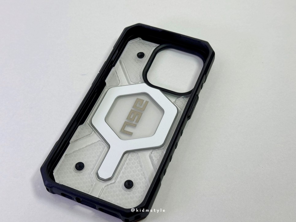 케이스의 디자인은 전형적인 uag의 색깔을 가지고 있으면서도 맥세이프 자석 부분이 귀여운 느낌이다.