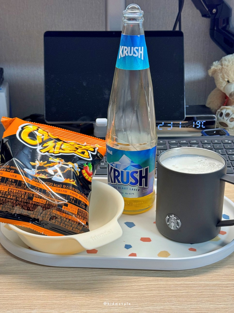 치토스를 안주로 놓고 가볍게 마실 때도 크러시로 맛본다. 최근에 국산 맥주는 테라, 켈리 위주로 마셨는데 요즘은 크러시도 늘 후보에 오르게 된다.