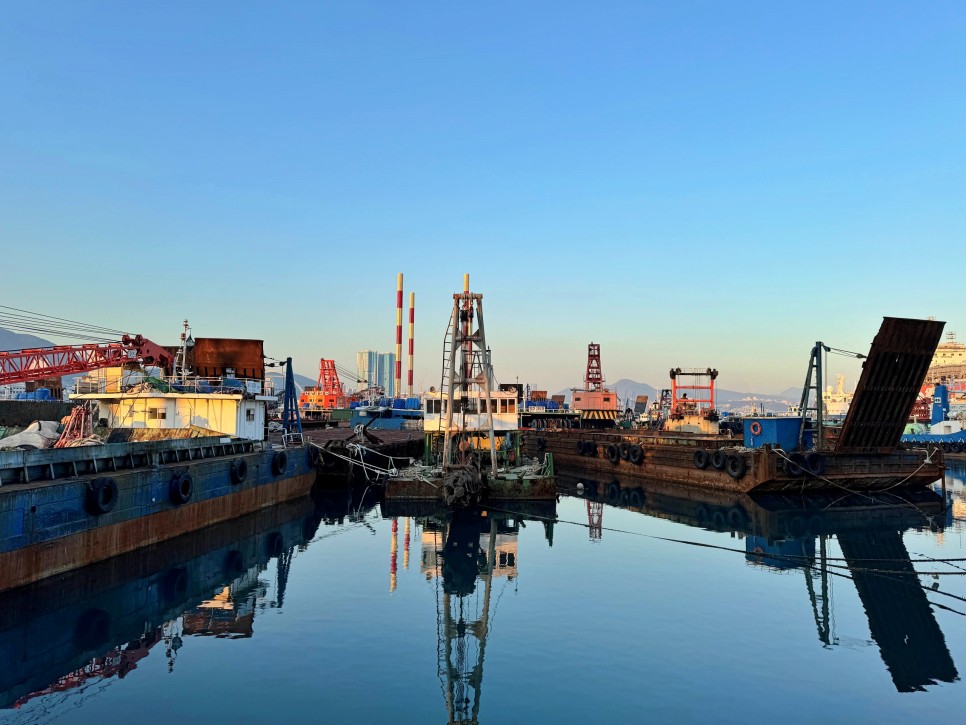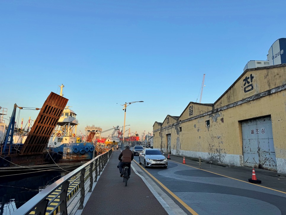 걷다 보면 바로 옆으로 이런 배들을 볼 수 있습니다. 정말 이색적인 풍경이죠? 이런 요소들이 이곳 봉래동 물양장으로 발길을 향하게 하는 것 같습니다.
