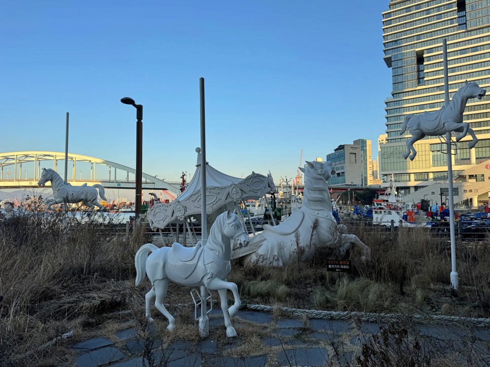 바로 옆에는 'MERRY-GO-ROUND 회전목마'라는 작품이 있는데요. 영도를 상징하는 절영마 프로젝트의 일환으로 설치한 작품입니다.