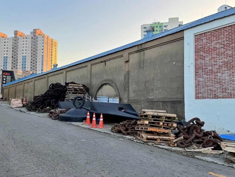 아이가 그려진 벽화 쪽 골목으로 가보면 커다란 닻과 쇠사슬을 볼 수 있는데요.