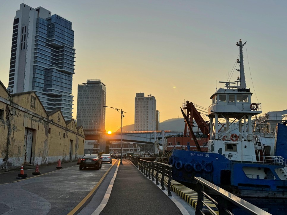 해가 뉘엿뉘엿 넘어가네요. 봉래나루로는 부산 영도의 진짜 매력을 제대로 느낄 수 있는 길이라고 생각합니다. 걸어서 갈 수 있는 봉래시장, 남항시장 쪽에 맛집도 정말 많습니다.