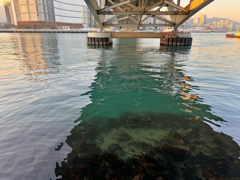 부산대교 아래입니다. 물이 꽤 맑죠? 가만히 보면 물고기도 노는 모습을 볼 수 있어요. 바다를 바라보며 바다의 내음을 맡으며 잠시 여유를 가져 봅니다.