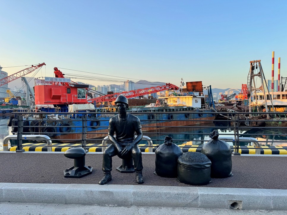 노동자 조형물을 만났습니다. 업무 중 잠깐의 휴식을 참 잘 표현한 것 같습니다. 사진을 남기고 한참을 쳐다봤습니다.