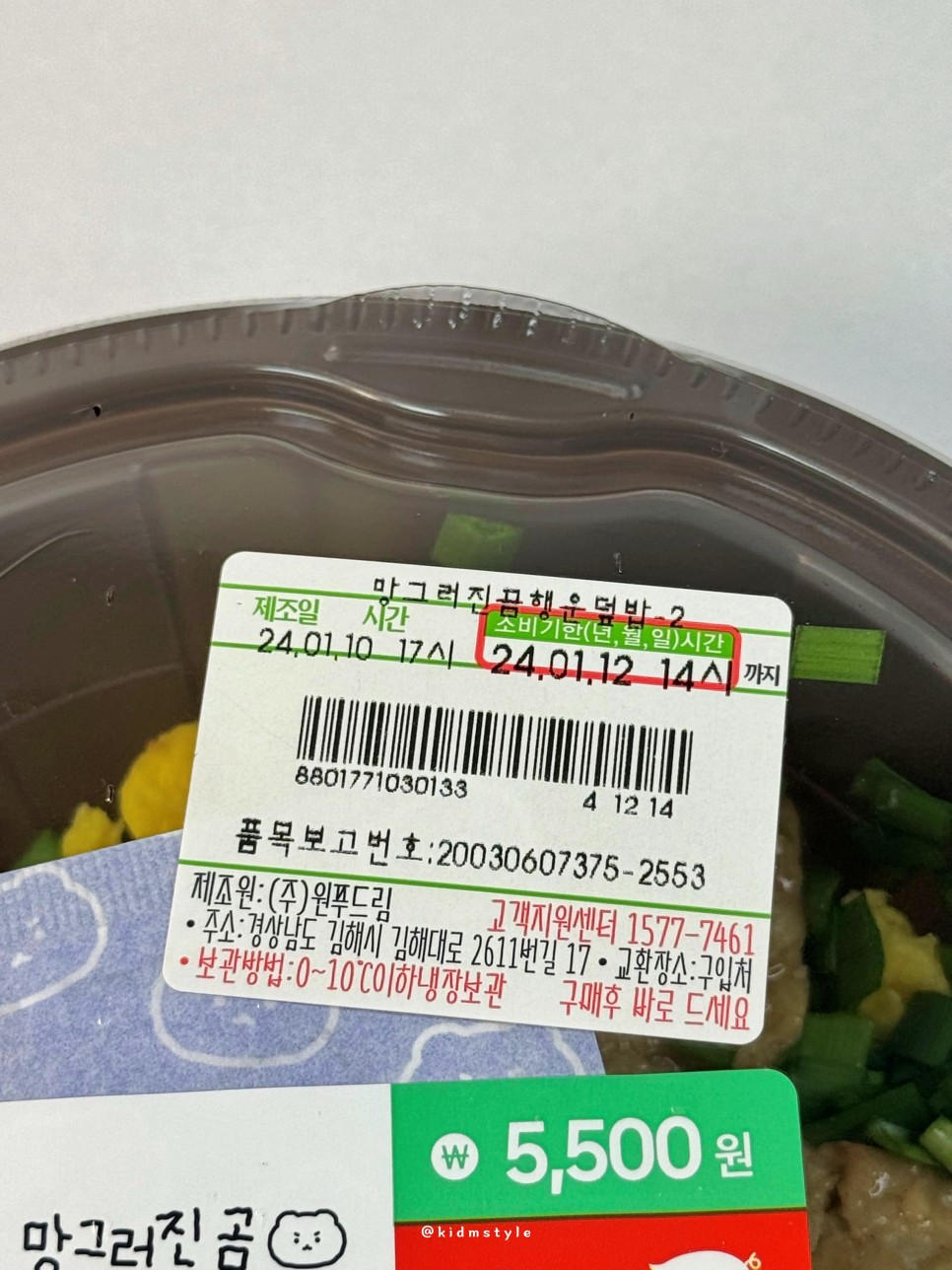 제조일부터 소비기한까지 이틀 정도로 짧은 편이며 제조는 김해의 원푸드림이라는 곳에서 하는데 부산 쪽에서 도시락을 구입하면 원푸드림에서 만든 제품이 꽤 많다. 작년 이맘때 CU 제품 엄청 리뷰했을 때의 포스팅을 참고해 보셔도 된다.