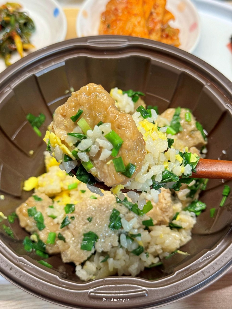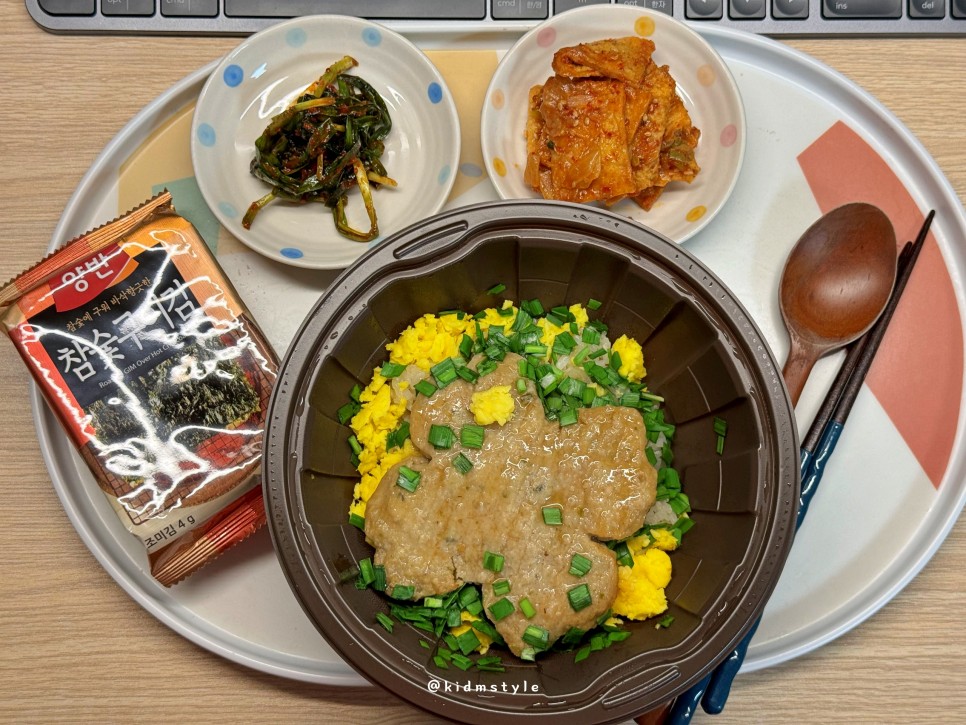 편의점 도시락은 간이 센 편인데 이건 간이 세지 않아서 의외로 괜찮은 느낌이다. 취향에 따라 간장을 좀 더 넣어 먹어도 될 것 같다.