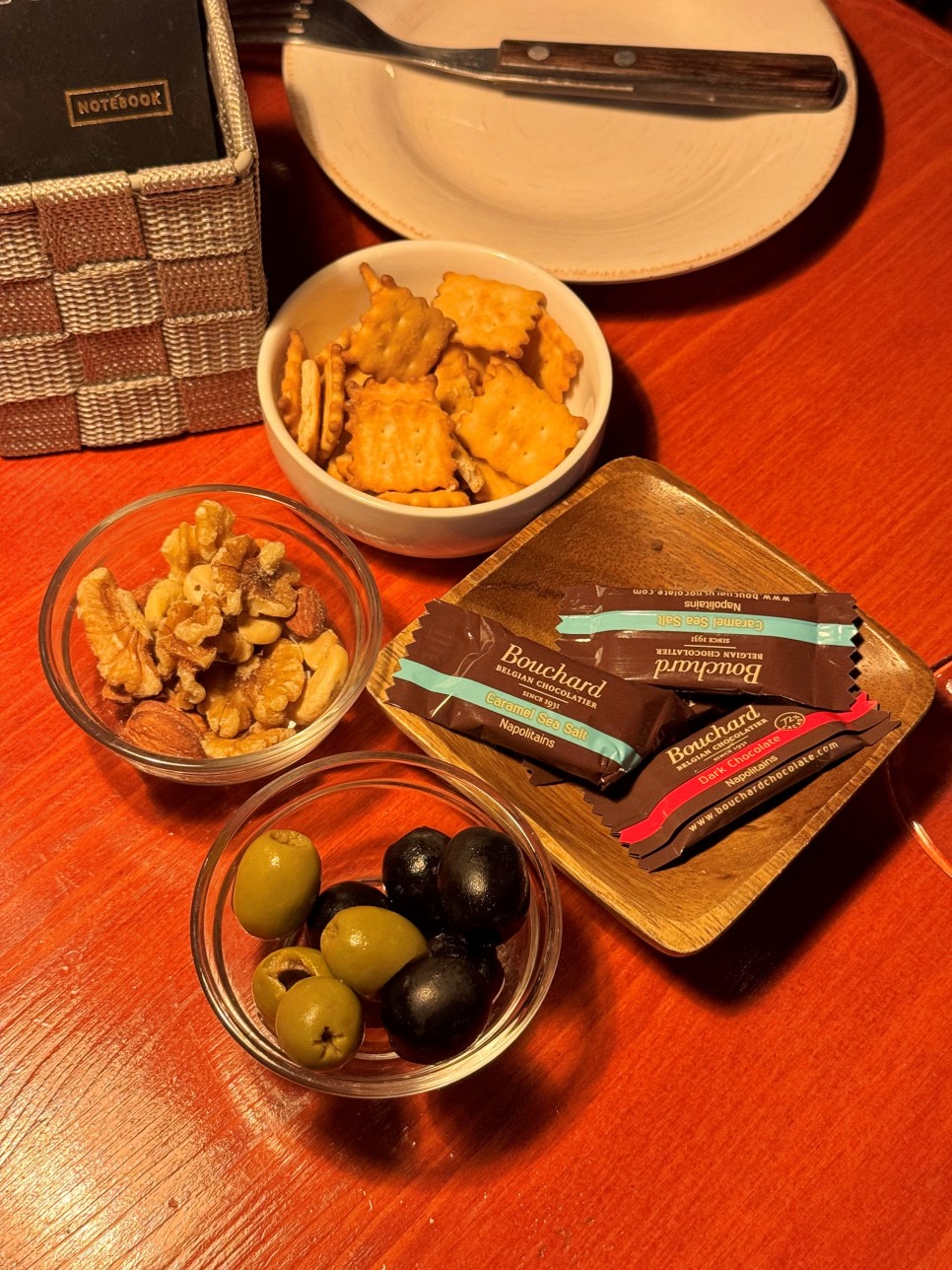 견과류와 올리브, 초콜릿