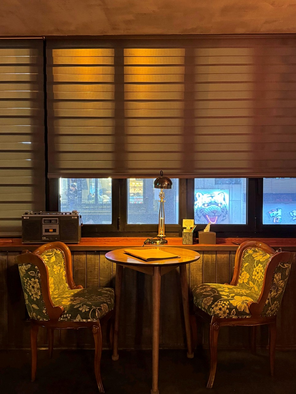 이 자리는 커플이 와서 앉으면 너무 괜찮을 것 같더라. 작은 조명이 테이블을 비추고 서로의 대화를 집중할 수 있는 공간이다.