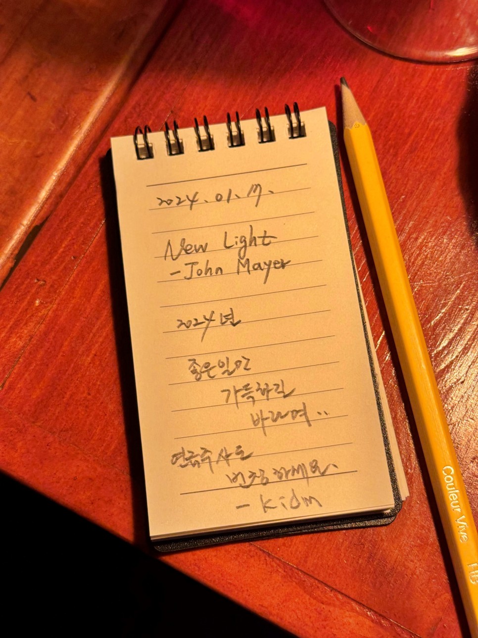좋아하는 노래 중에서 뭘 신청하지 그 고민을 하면서 음악 앱 플레이리스트를 뒤적거리고 그러다가 발견한 존 메이어의 'new light'를 먼저 적어본다.