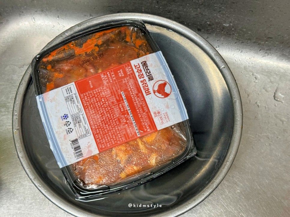 그리고 다른 날에 에브리쿡 고추장 닭갈비를 맛보기로 한다. 미리 물에 담가서 자연해동을 해두었다. 잘 녹았다.