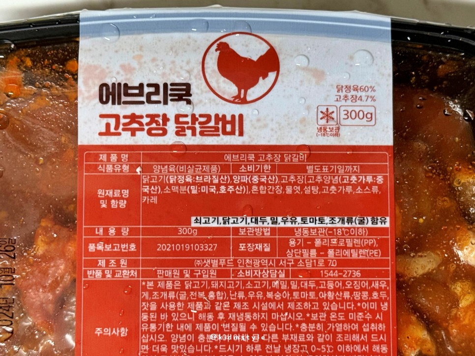 다즐샵 에브리쿡 고추장 닭갈비 영양성분 정보 참고