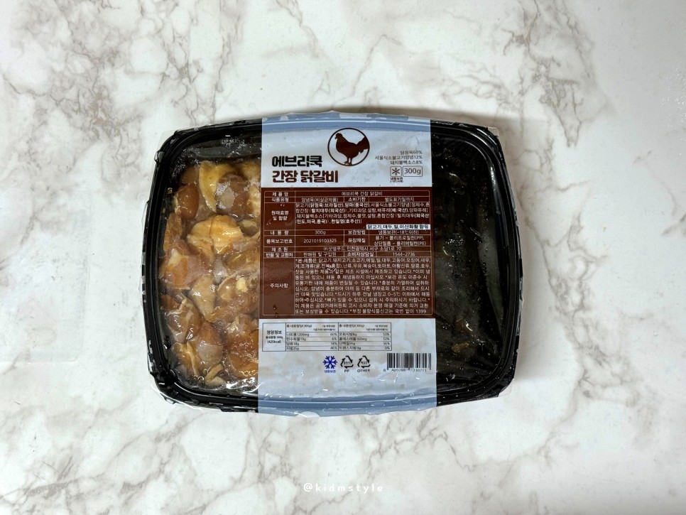 다즐샵 에브리쿡 간장 닭갈비 영양성분 정보 300g에 425kcal이다.